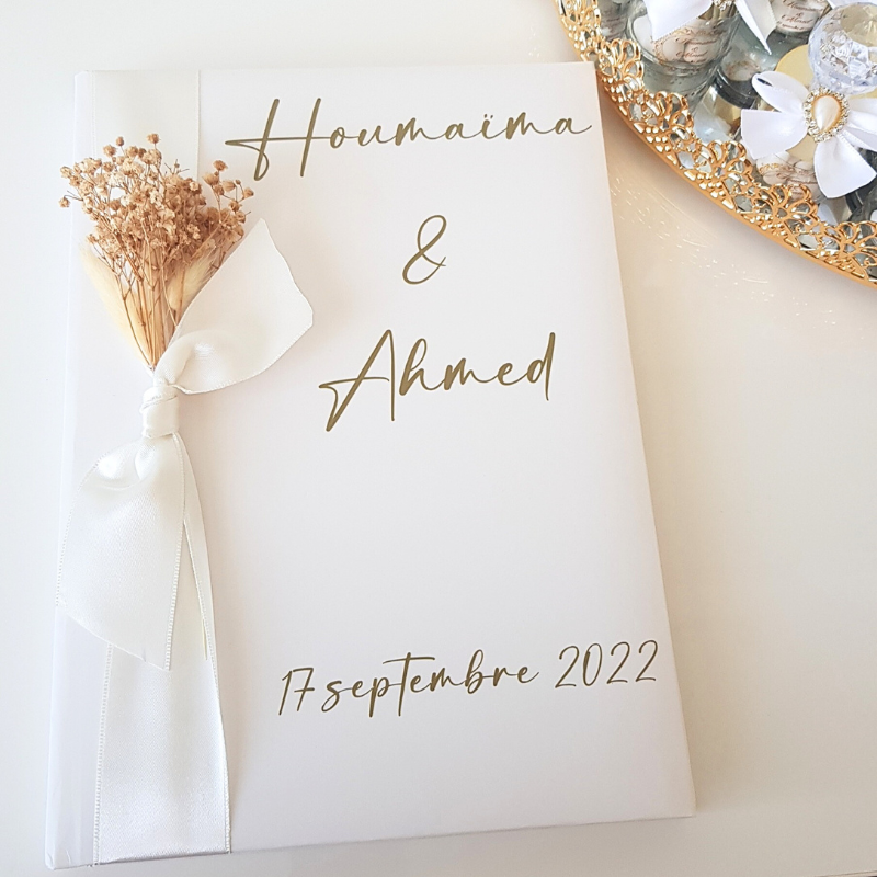 Ce livre d’or ne sert pas seulement à collecter des mots, il constitue également une pièce maîtresse dans votre décor. Personnalisez le à souhait pour qu’il reflète l’essence de votre événement, qu’il s’agisse d’un mariage, d’un baptême ou d’une fête de fiançailles. Faites de ce livre d’or un incontournable pour immortaliser chaque instant et embellir votre espace avec des souvenirs durables.