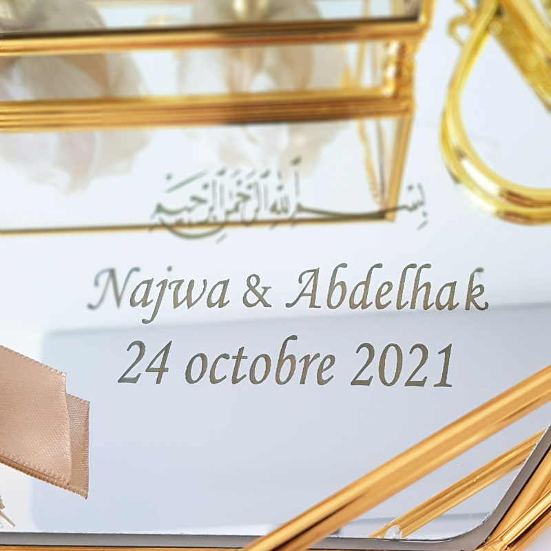 Notre plateau alliances personnalisé est conçu pour rendre votre cérémonie inoubliable. Gravé avec une phrase spéciale ou les prénoms des mariés, il ajoute une touche personnelle à cet instant précieux. Il se distinguant par son élégance. Ce plateau devient non seulement un support pratique pour vos alliances, mais aussi un véritable souvenir à conserver. Ainsi il reflète l’union célébrée en ce jour si spécial.